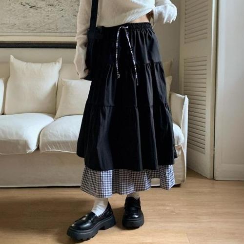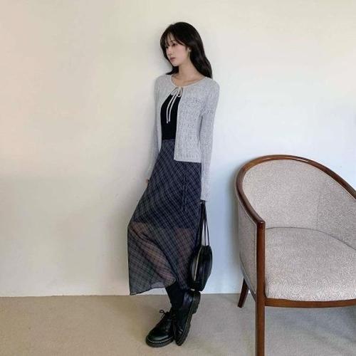 [다잇템][다잇템] 여자 환절기 시폰 봄가을 격자 롱스커트_24365720_588872