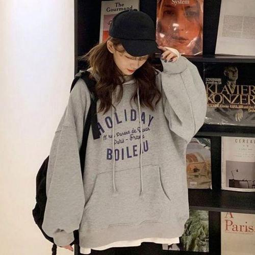 [셀러허브_여성트랜드패션]여자 후드티 봄가을 캐주얼 편한 상의 레터링 루즈핏