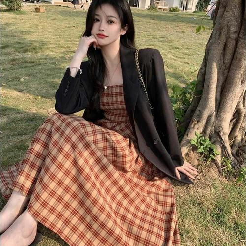 [오너클랜]인기상품 봄 데이트 룩 여자 나들이 체크 패턴 맥시 롱 원피스 [WFLHRO7_260208]