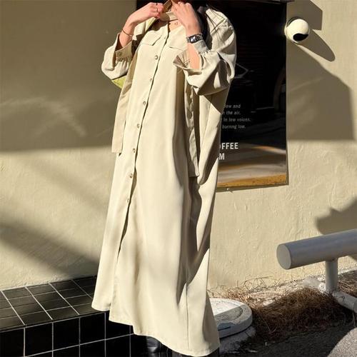 [끌레아]여성 롱코트 봄 가을 간절기 베이지 트렌치코트 바바리코트 루즈핏 롱셔츠 롱원피스 아우터 자켓
