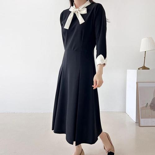 [다잇템]여자 콘트라스트 봄하객룩 핀턱 롱원피스 (45973724)