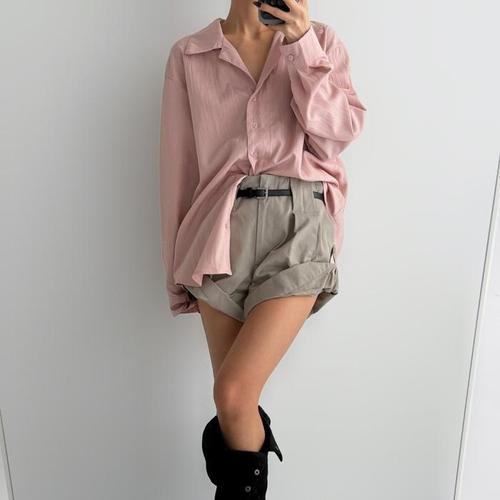 [신상오픈런]여성용 루즈핏 봄 긴팔 셔츠 분홍색 박시 스타일 (45899819)