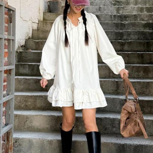 [신상오픈런]여성 리본 장식 프릴 캉캉 미니 드레스 봄 나들이룩 (45899358)