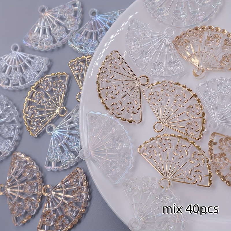TEMU 믹스 40개 아크릴 AB 컬러 투명 레트로 꽃 부채 펜던트 귀걸이 & 휴대폰 체인 액세서리