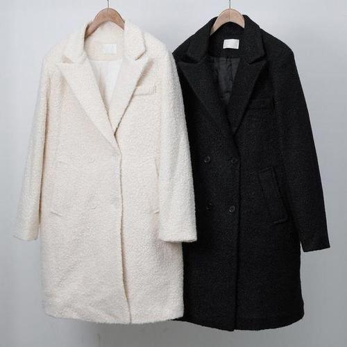 여성 하이넥 겨울 연말룩 부클 뽀글이 울 코트