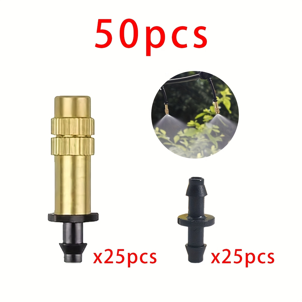TEMU 50개, 조절 가능한 구리 분무 노즐 드립 관수 스프레이 4/7mm 미세 분무 노즐, 정원 잔디 및 채소 온실 냉각 관수 액세서리에 적합