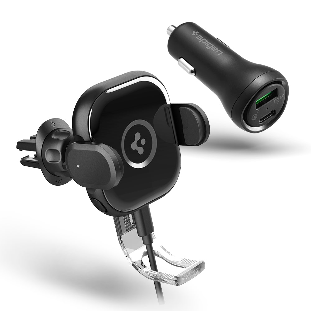 원터치 15W 고속 무선충전 차량용 자동거치대 송풍구형 UTS12W+시거잭 충전기