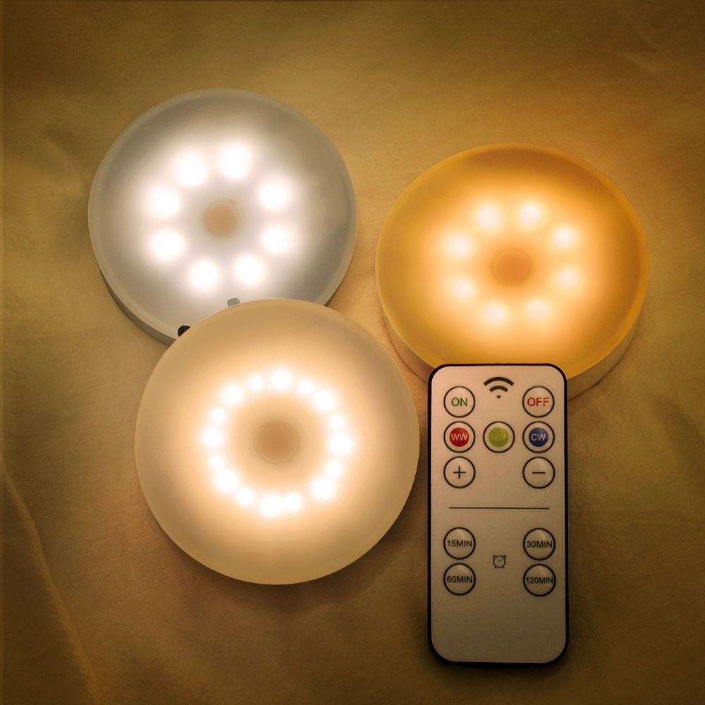Acc LED 붙이는 조명 무드등 3개 백색 리모컨 벽 부착 등 터치 무선 접착식 부착식
