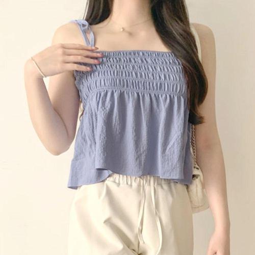 [오너클랜]인기상품 끈나시 프릴 블라우스 셔링 휴양지룩 탱크탑 뷔스티에 [WFLSRIO_260205]