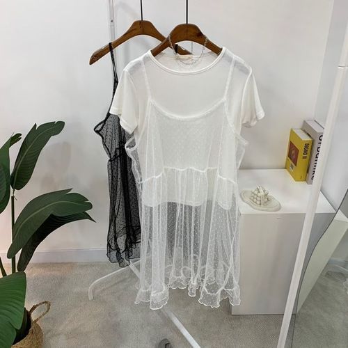 비아 도트 시스루 프릴 뷔스티에 미니 원피스 2color