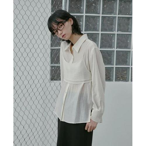 [에이비에프지]셔링 디테일 뷔스티에 레이어드 긴팔 블라우스 APY4HB391J
