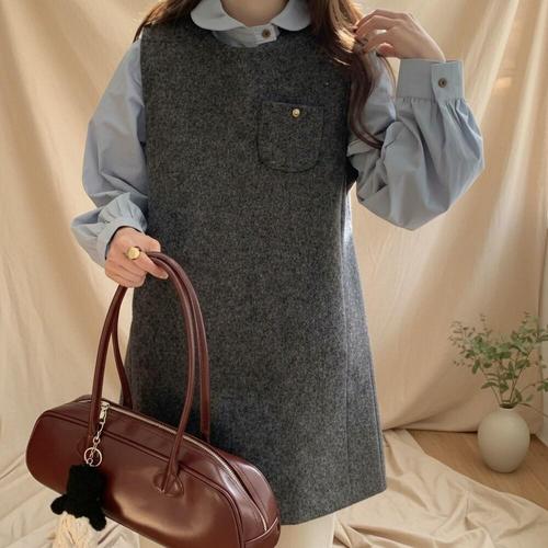 [옷자락] 여성 겨울 포근한 레이어드 뷔스티에 원피스