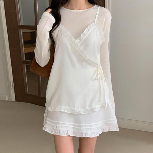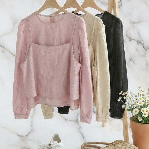 [3사이즈] 레이어드 스트랩 뷔스티에 블라우스