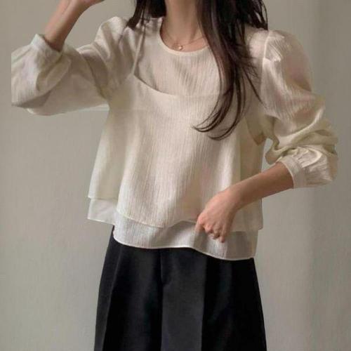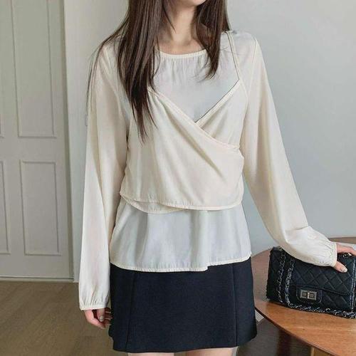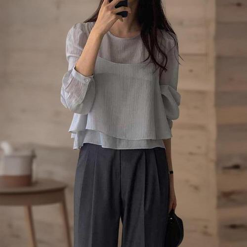 떳다그녀 앤스롤 뷔스티에 레이어드 일체형 오간자 라운드넥 봄 가을 간절기 블라우스