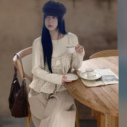 크롭 뷔스티에 나시 + 긴팔 니트 세트 투피스 여성 데일리 레이어드룩