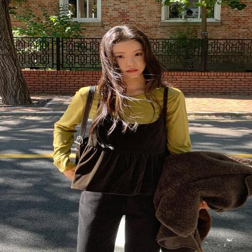 [옷자락]여성 긴팔티와 레이어드 뷔스티에 플레어 롱 원피스 세트