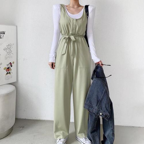 [다잇템]여자 썸머 린넨 핀턱 뷔스티에 와이드 점프수트