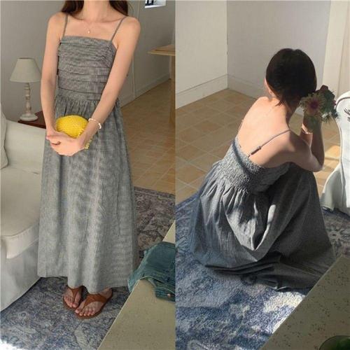 자스민벨 두리 빈티지 체크 스트랩 끈 나시 뷔스티에 길이조절 원피스 레이어드 사계절 데일리 여행룩 여름신상/여름원피스/휴양지룩/휴가룩