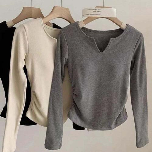 [오너클랜]인기상품 여성용 트임 긴팔 티셔츠 패드내장 셔링 노브라 이너 상의 [WFLLAQ7_260304]