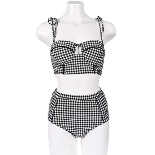 [옷자락]여자 슬릿 조절 브라 벌룬 격자 사이드 비키니 패드 수영복