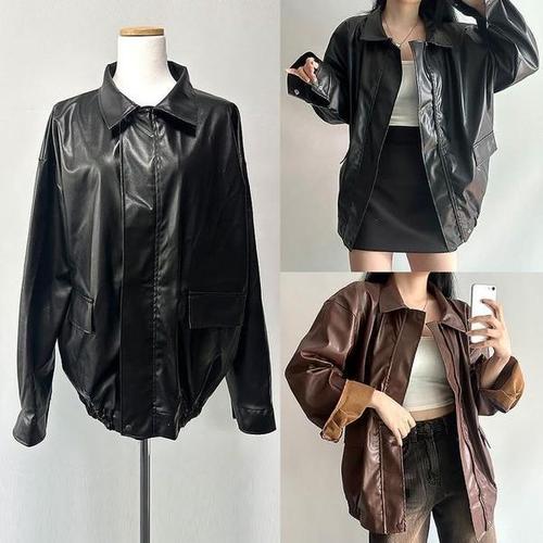 지디오 여성 가죽 자켓 숏 라이더 재킷 루즈핏 빅사이즈 카라넥 누빔 집업 점퍼 가을 겨울 여자 아우터