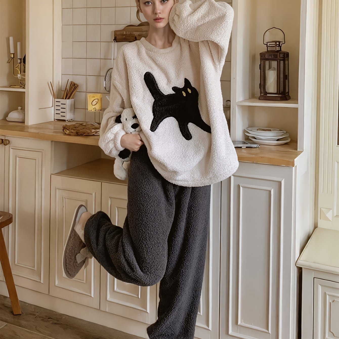 TEMU 여성용 가을 겨울 캐주얼 루즈핏 긴팔 상하의 잠옷 세트, 트렌디한 가을/겨울 라운지웨어