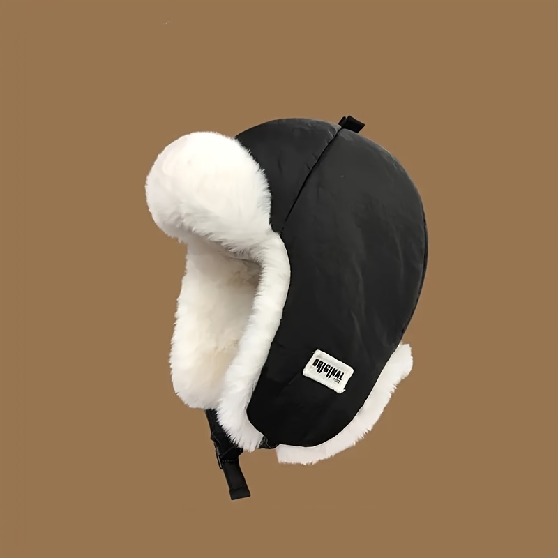TEMU 1개 겨울용 이어플랩이 있는 따뜻한 모자 - 조절 가능한 스트랩, 투톤 컬러블록 (검정/회색), 남녀공용 경량 보온성(베이지/그레이/블랙) / 부드러운 안감 - 스키·눈보드·일상적인 겨울복에 완벽한