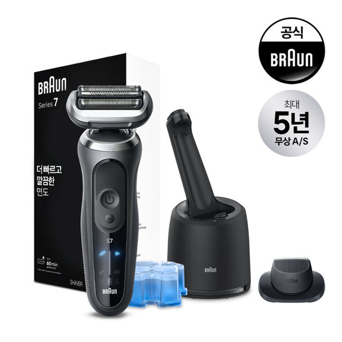 BRAUN 시리즈 7 브라운 전기면도기+세척충전스테이션세트 72-G7200cc 그레이