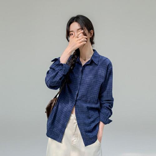 [기타브랜드]루즈핏 블루 여성 체크 셔츠