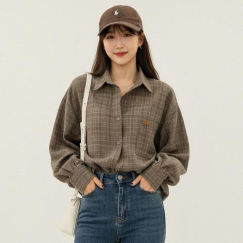 [기타브랜드]루즈핏 셔츠 여자 여성 체크 블라우스