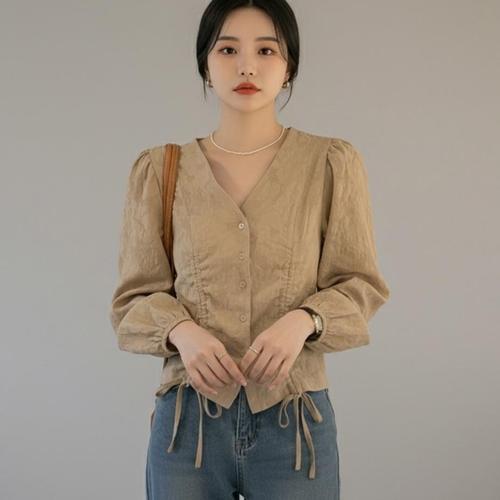 [기타브랜드]셔링 셔츠 스트랩 블라우스 브이넥 여자 여성