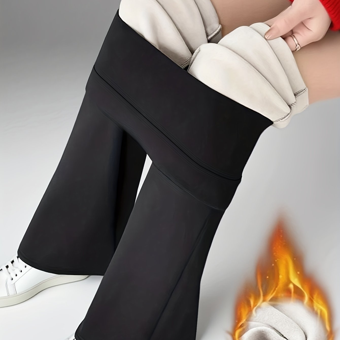 TEMU 여성 가을/겨울 두꺼운 플레어 팬츠 캐주얼 바지 따뜻한 하이웨이스트 스키니 복부 노출 플레어 팬츠 슬림 레그 길이 늘리기 고탄력 롱 팬츠 하이웨이스트 베이스 레이어 팬츠 겨울 데일리 캐주얼 웜 두꺼운 플레어 팬츠 따뜻한 에스