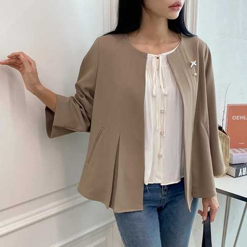 옷자락 / 여성 오피스룩 브리치 핀턱 날개 노카라 자켓