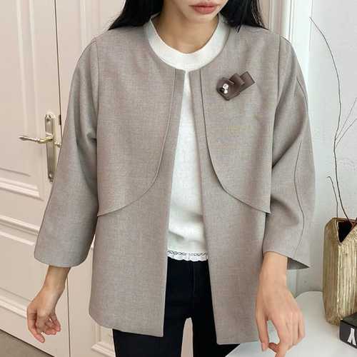 옷자락 / 여자 클래식 메탈 브리치 노카라 9부 콤비 자켓