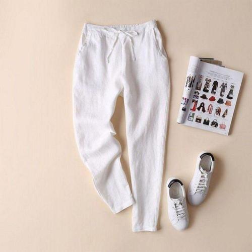 [다잇템]여자 하렘핏 미색 마원단 끈바지 린넨혼방 세미배기 바지 (7625494A)