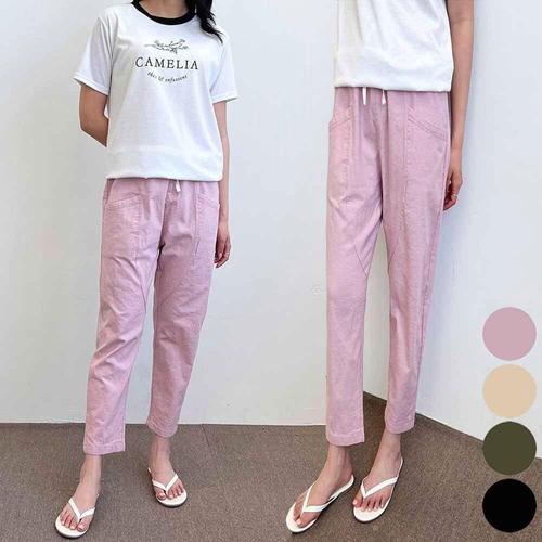 [오너클랜]인기상품 린넨 포켓 바지 시원한 여자 마 배기팬츠 밴딩바지 [WFLNMC6_260205]