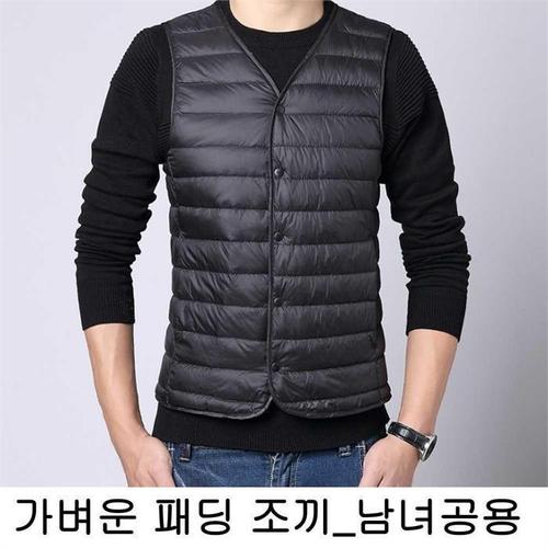 [다잇템]남자 경량 패딩 피크닉 여자 검정 V넥 조끼 (10039303A)