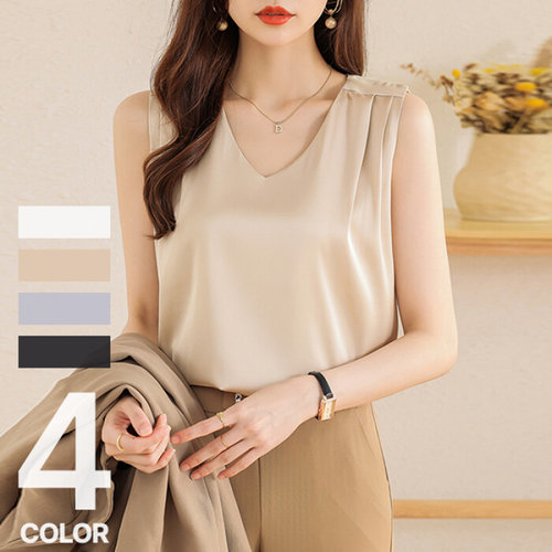 모찌봉 / 새틴 브이넥 민소매 나시 블라우스 (4color)
