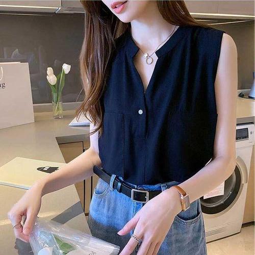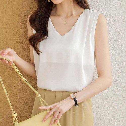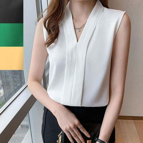 [에이치플러스몰]브이넥 민소매 캐주얼 블라우스