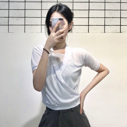 [모노무드]모노무드 여름용 브이넥 민소매 크롭 니트 시스루 베스트 블라우스