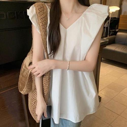 [셀러허브_여성트랜드패션]ONM A라인 루즈핏 민소매 블라우스 탑 브이넥 스파게