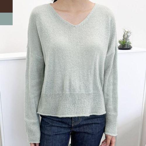 [에이치플러스몰]여성 브이넥 여리핏 니트 1P 긴팔 셔츠 심플 데일리룩