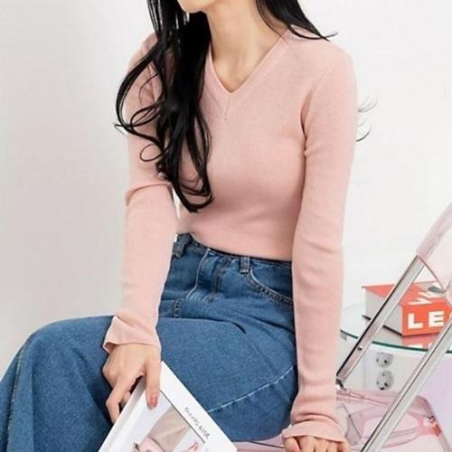 여자 브이넥 테레터링 니트 셔츠