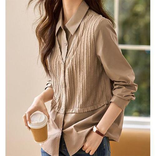 [패션시그널]브이넥꽈배기조끼레이어드 셔츠블라우스 A04070