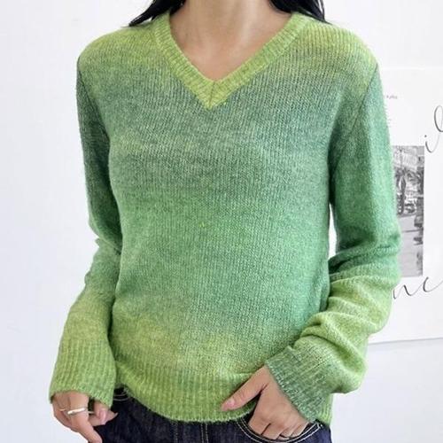 [셀럽하우스]여자 UYKT1787 그린 그라데이션 간절기 브이넥 니트 티셔츠