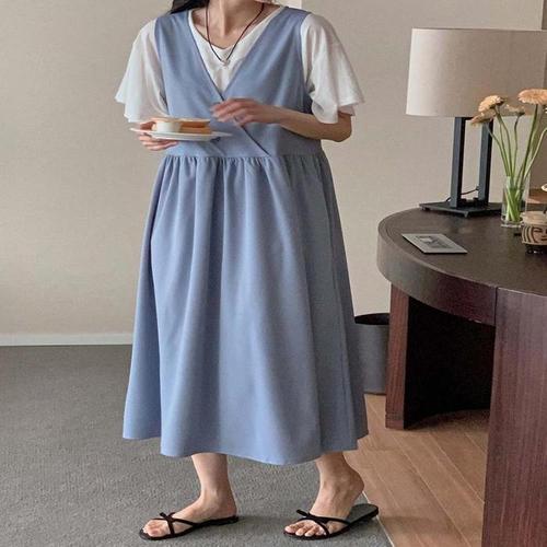 [다잇템]여자 베스트 단추 V넥 롱 코디 원피스 (10419161A)