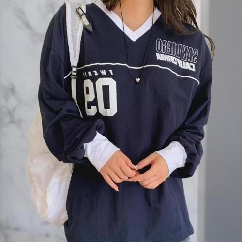 WANGBAIWAN 1+1 여성 루즈핏 브이넥 긴팔 티셔츠 문예 솔리드 코디 빅사이즈 상의 S16