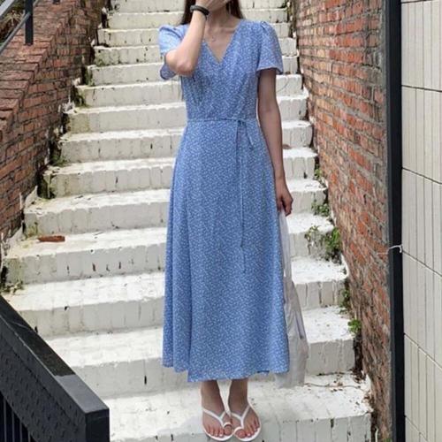 [오너클랜]인기상품 여성스러운 랩스타일 디자인 V 넥 라인 플라워 원피스 [WFLKRO6_260303]