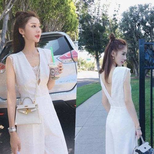[셀럽하우스]브이 UNBN6597 레이스 민소매 점프슈트