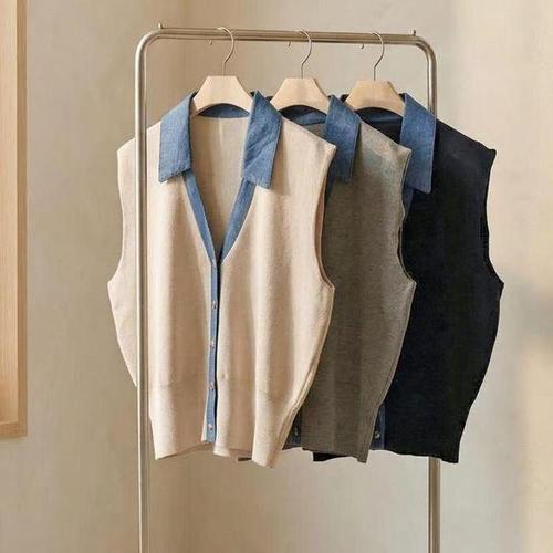 [셀러허브_여성트랜드패션]여자 브이 카라넥 진 베스트 스웨터 가디건